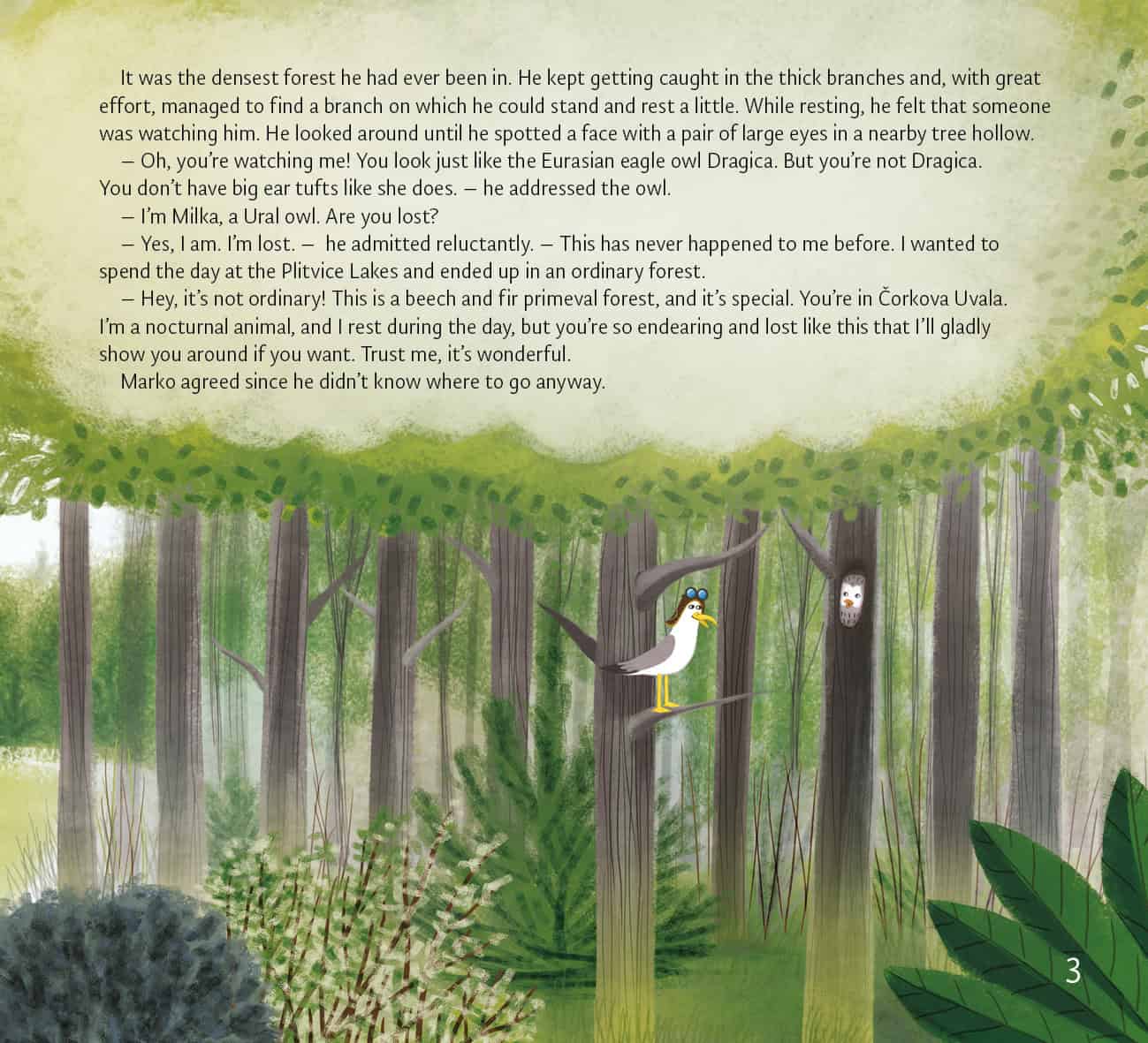 Marko at the Plitvice Lakes National Park prijevod je galebMarkove priče iz Nacionalnog parka Plitvička jezera. Svoj dvanaesti park razgledao je prirodoljubac u društvu Milke, sove jastrebače koja je svoj dom pronašla u Čorkovoj uvali, pravoj plitvičkoj prašumi. Uz nju je naučio što su sedra i cret, koliko je visok najveći plitvički slap i koliko jezera ima u našem najstarijem i najvećem nacionalnom parku.